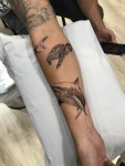 Meu trabalho envolve desenho, estudo anatômico e de movimento, para qualquer estilo de tatuagem. Assim o projeto se adequa ao corpo com maior fluidez, independentemente do estilo, tamanho ou particularidades.