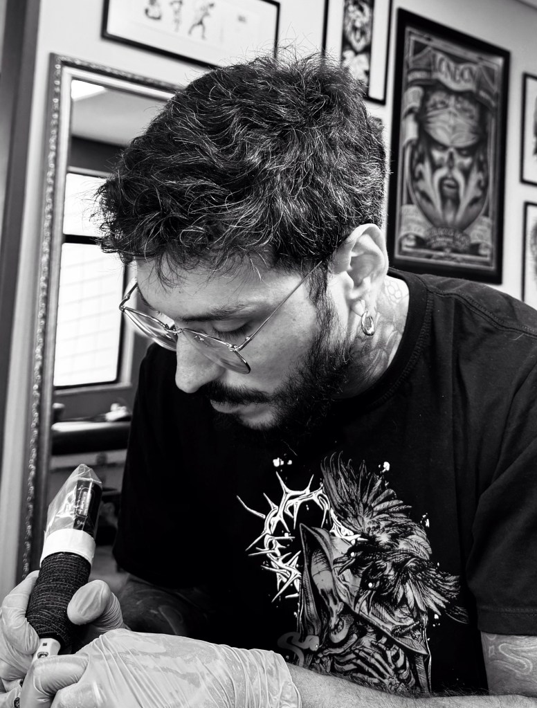 Tatuador desde 2014, tenho como foco o Dark Surrealismo através de vários estilos, destacando o Black Work, Realismo preto e cinza, Neo Tradicional além de tatuagens mais delicadas, coloridas, entre outras.